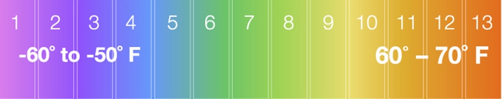 植物耐寒带分区对于种花、种草、种菜的人是必须要知道的。它是决定植物是否能过冬,是否会被冻死的重要因素。美国农业部(United states Department of Agriculture)将美国划分为13个耐寒区,每个区又分成A和B两个分区。A分区的温度略低于B分区的温度。每个种植区覆盖10度(华氏摄氏度)左右的范围。 1 区是最冷的,平均最低冬季温度为 -60 至 -50 华氏度,而 13 区最热,冬季平均温度最低也有 60 至 70 华氏度。