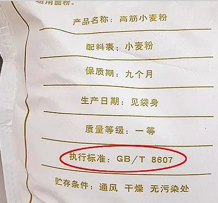同样的购买高筋面粉的时候,一定更要看清楚标准号是GB/T8607才购买。