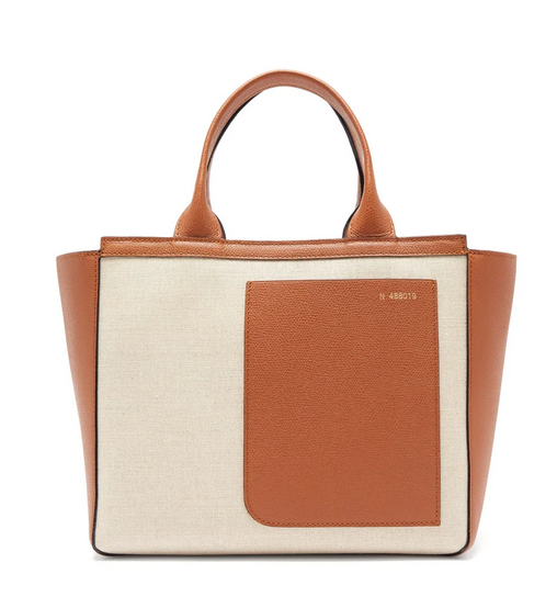 6, VALEXTRA Shopping 双色皮革边饰帆布手提包