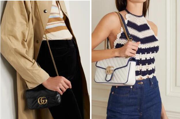 GG Marmont链条包简约大气的造型,自诞生就成为爆款断货王!GG Marmont系列手袋的命名灵感来源于好莱坞日落大道Chateau Marmont酒店。古驰双G链条包以七十年代Gucci最经典的标志性GG造型为原型, 黄铜做旧的GG Logo非常文艺复古,辨识度极高,是那种看上去背很多年也不会过时的经典款!包型简约但可盐可甜可塑性极强,既能搭配奢华的皮草成熟性感,也能搭配牛仔外套碎花裙的休闲look,轻松提升优雅感!