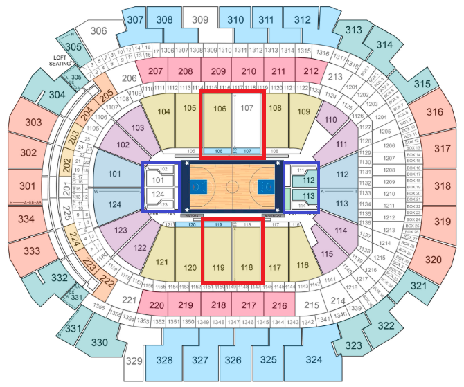 这些区域的座位可能会有一定的视力阻碍,但仍然离球场特别近,性价比高。坐在球员通道一侧的还有机会在球员进场、中场和退场的时候和他们high five,甚至要签名,对面的区域当然没有这样的福利了,但是观感相同,附近一般是媒体区,也是不错的选择啦~