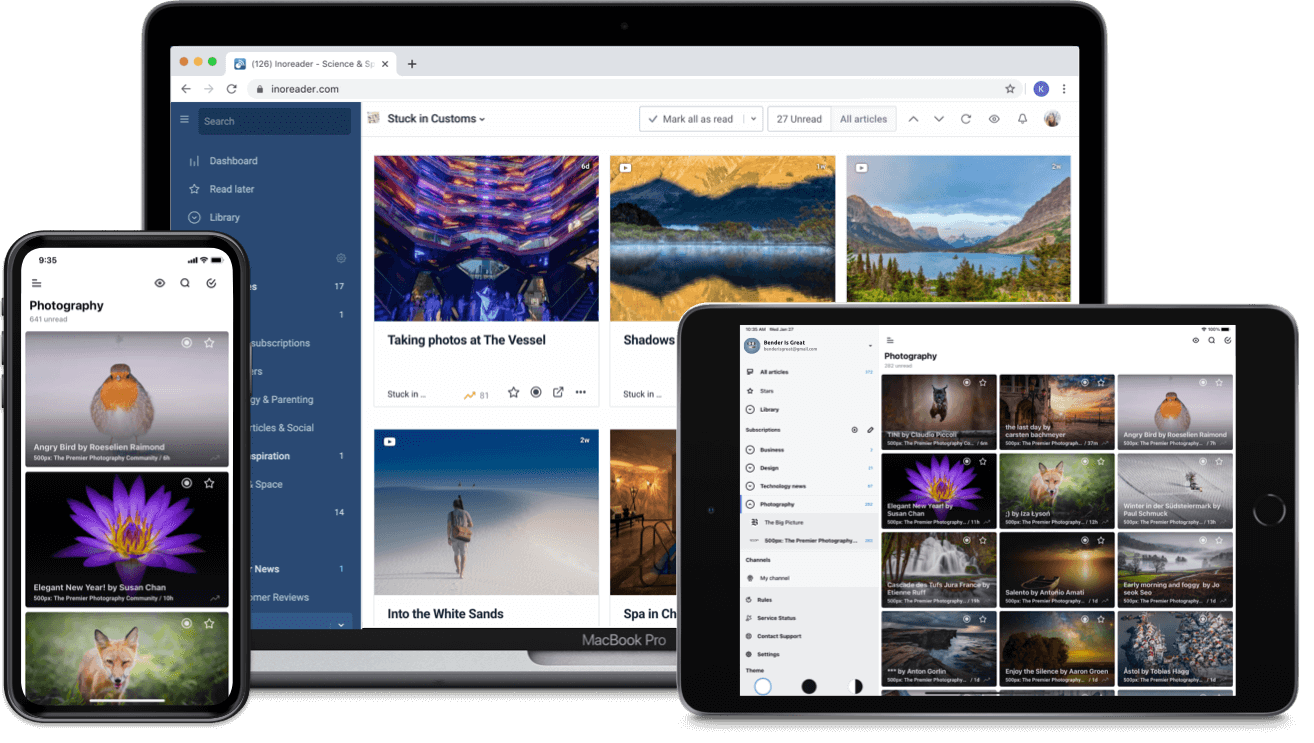 Feedly 最大的特点就是它界面很简洁,除了订阅源和文章,基本没有其他的干扰内容,在文章阅读界面,字体和图片也做了相应的优化,有的页面甚至比很多的网站中都要漂亮,可以让人专注于内容本身,你可以无干扰地阅读各个网站的RSS资讯,甚至比原网站体验还要好。