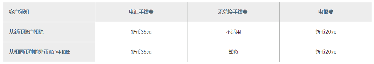 手续费:汇款金额的0.125%(最少S$20)加上固定电报费S$20