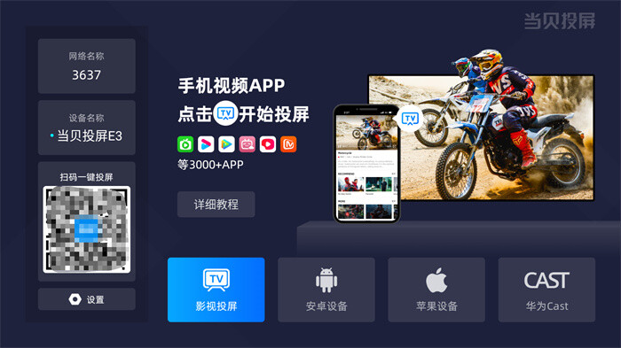 当贝投屏支持3000+APP一键投屏,其中包含央视频和咪咕,因此我们可以直接通过影视投屏完成