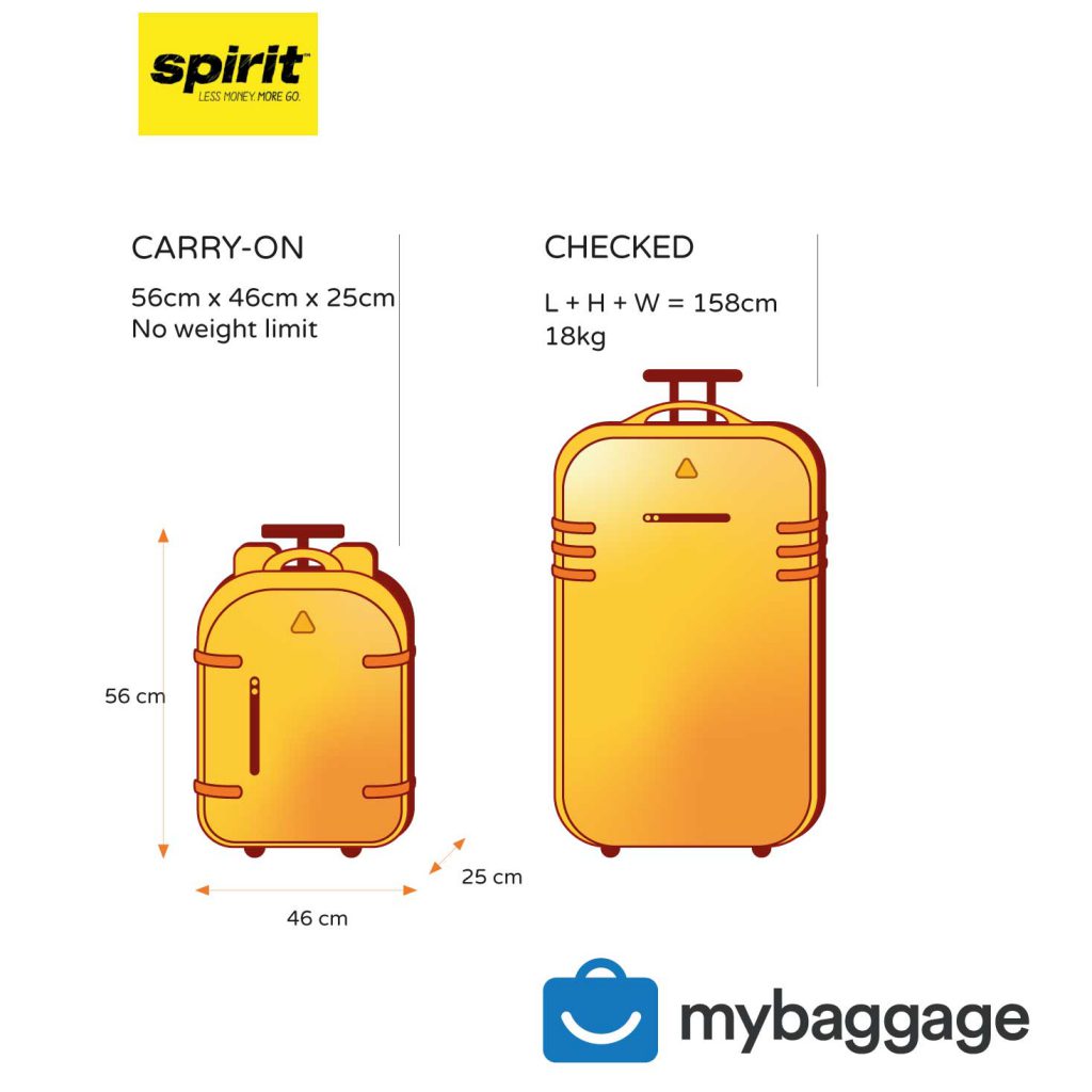 Spirit Airlines 的乘客无权获得任何免费托运行李限额。托运行李的重量不得超过 45 公斤/99 磅 或总尺寸不得超过 203 厘米/80 英寸。