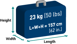 托运行李的尺寸不得超过 157 厘米或 62 英寸,重量不得超过 23 公斤或 50 磅。任何超过尺寸或重量限额的行李均需收取超额行李费。