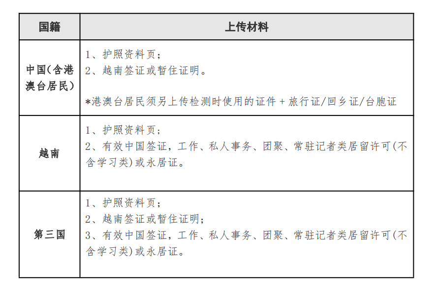证件、签证等在越居留证件、疫苗接种证明、入