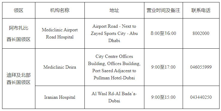 注:第二次检测机构在阿布扎比酋长国,向驻阿联酋使馆提交申请;第二次检测机构在迪拜及北部酋长国,向驻迪拜总领馆提交申请。