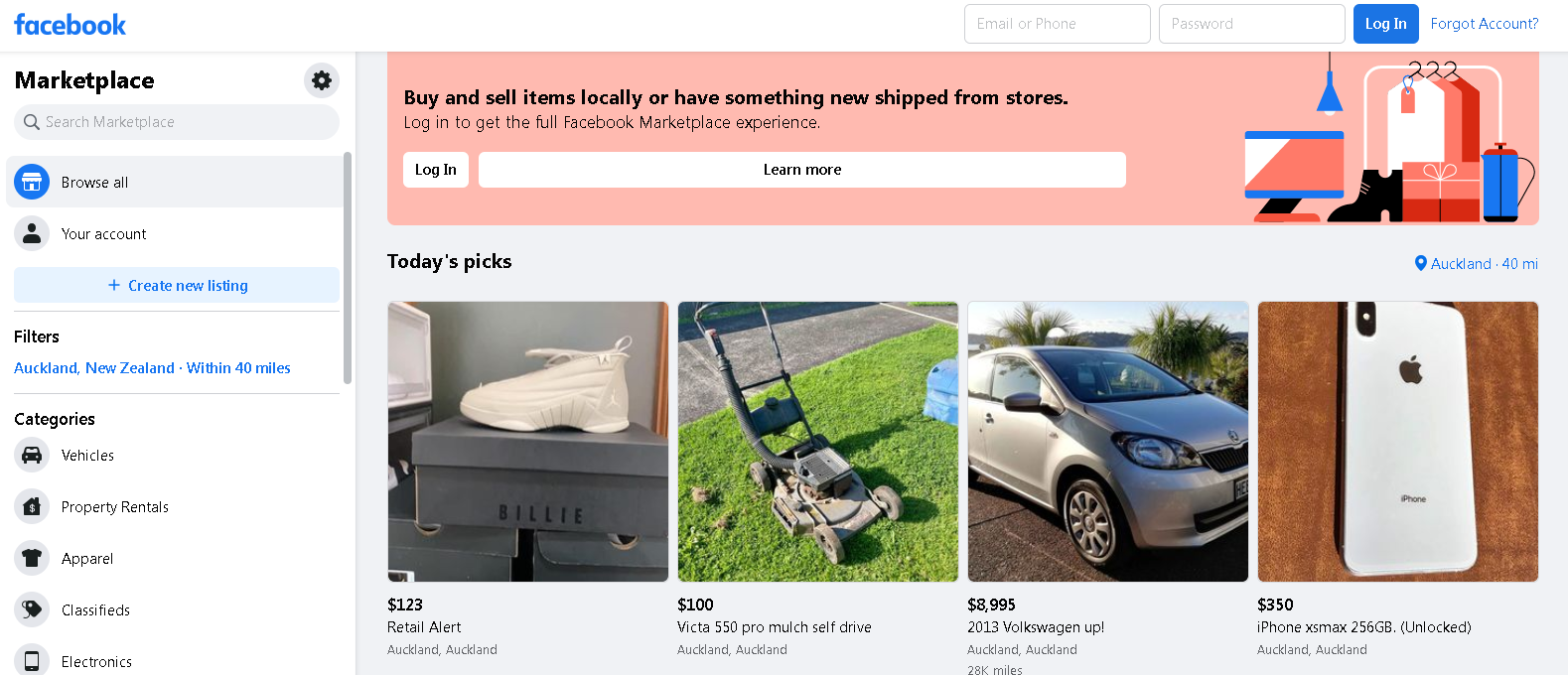 【网站简介】Facebook Marketplace在新西兰也比较流行,很多人都在上面买卖二手物品。FB的Marketplace也有很多私人二手车源,车的质量参差不齐,上面有很多很旧的车,适合预算较低和要求不高的小伙伴。但是如果你喜欢改装或者只想要零件非常推荐在这里淘。Facebook上最多的还是背包客最爱的的露营车,自己改造的房车,可以睡在车上的那种。
