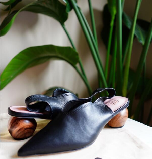 WES SLINGBACK POINTED EGG HEEL PUMPS 黑色蛋跟Wes尖头露跟鞋 ¥1,590
