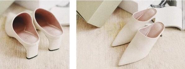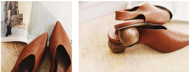 这双鞋是横向扁根,非常有特点,优雅又不失帅气。小羊皮材质,粉色翻皮内里,真心是软到心醉。粗跟走路非常稳,穿着逛街都不会累。搭配连衣裙和西装半裙,完美~!