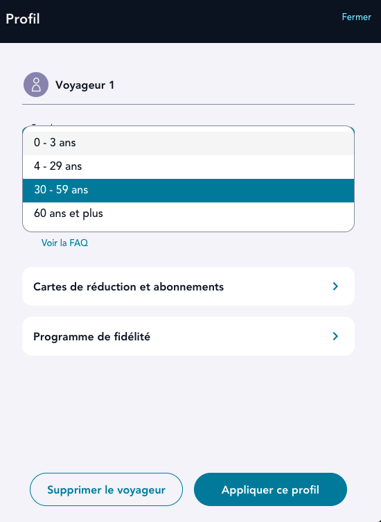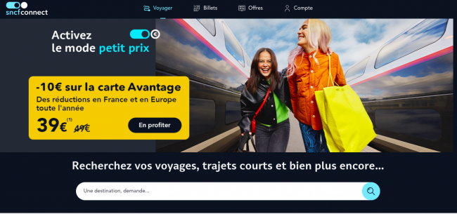 carte Avantage有 成人版、 高级版或 青少年版,在 SNCF Connect 上的售价为 49 欧元。可以在 INOUI TGV 上的所有二等舱和一等舱门票和行程中享受 30% 的折扣。