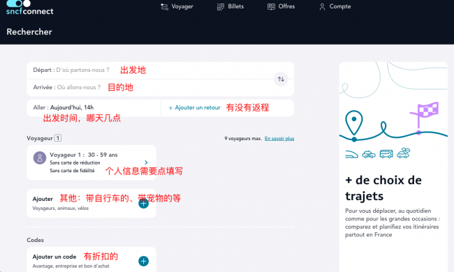 同样方法输入目的地就好了,有的城市会有很多火车站,但是除了巴黎,其实大部分城市都很小,如果没有被告知特定火车站,一般选toutes gares就可以啦!