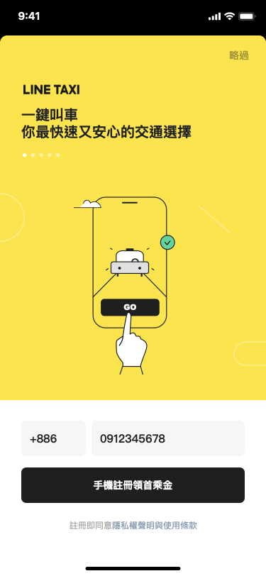 Step 1.LINE 搜寻好友「@linetaxi」加入好友或从LINE 主页点击【LINE TAXI】并完成注册。